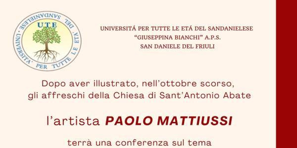 Dopo aver illustrato, nell’ottobre scorso, gli affreschi della Chiesa di Sant’Antonio Abate l’artista PAOLO MATTIUSSI terrà una conferenza sul tema Arte con la... A di donnA venerdì 6 ...